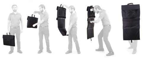 - Lengüeta de tiro oculta en la parte inferior de la bolsa para facilitar el despliegue del escudo